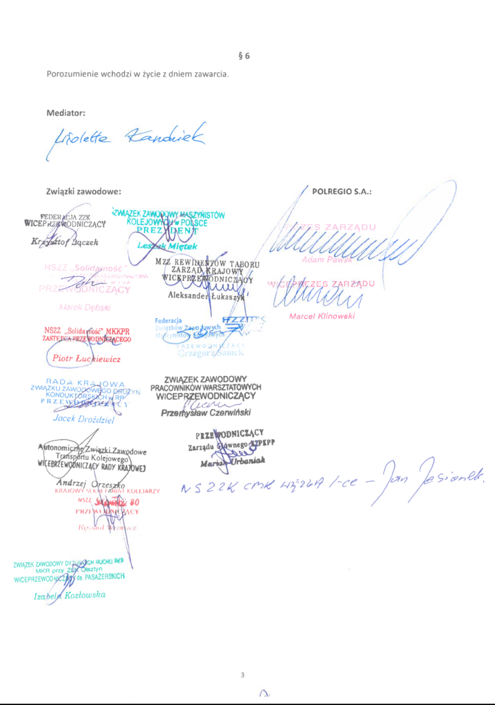Porozumienie kończące spór zbiorowy w POLREGIO S.A.
